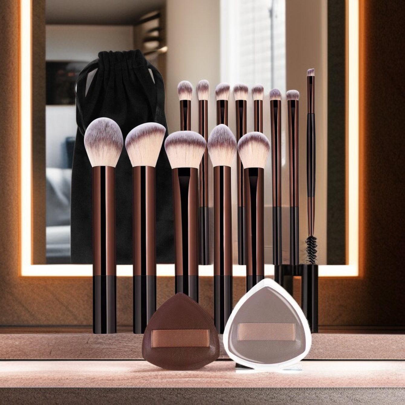 13개의 브라운 알루미늄 메이크업 브러쉬 세트로 전문적인 메이크업 연출이 가능하며, 부드러운 터치감으로 피부에 자극 없이 사용할 수 있습니다.